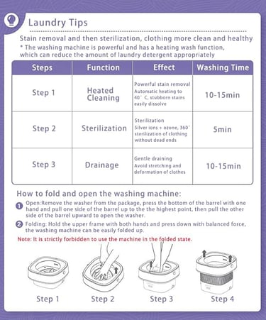 "Přenosnost redefinována. S vestavěnou rukojetí a ultralehkým designem je Mini Washing Machine vaším dokonalým společníkem, ať už jste doma nebo na cestách."